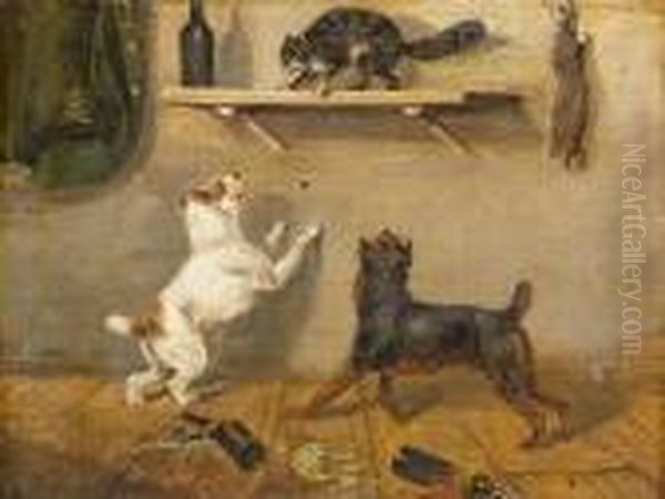 Bring the timeless beauty of Paul Friedrich Meyerheim's Zwei Hunde, Eine Auf Flaschenbord Gefluchtete Katze Verbellend into your home with a handmade oil painting reproduction. Carefully recreated on canvas by skilled artists using traditional techniques, this piece captures the delicate brushwork, subtle light, and vibrant color of the original masterpiece. With museum-level quality and rich texture, it brings elegance and artistic depth to any space. Enjoy free shipping and make this masterpiece a part of your personal collection.