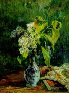 Marguerites Et Pivoines Dans Un Vase Bleu