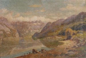P. "gebirgssee". Sign. Ol Auf Lwd. 35 X 50 Cm. Rahmen