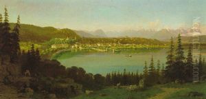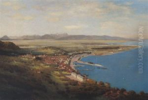 Bodenseeufer Mit Blick Auf Eine Stadt (+ Bodenseeufer Mit Fischerboot Im Vordergrund; 2 Works)