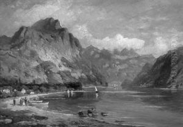 P. "gebirgssee". Sign. Ol Auf Lwd. 35 X 50 Cm. Rahmen