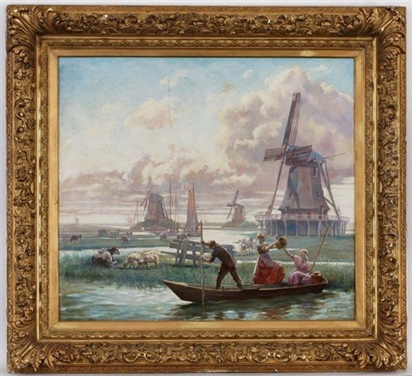 Paysage De Campagne Hollandais Avec Paysans Et Animaux