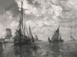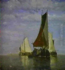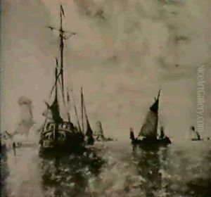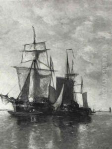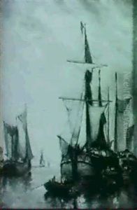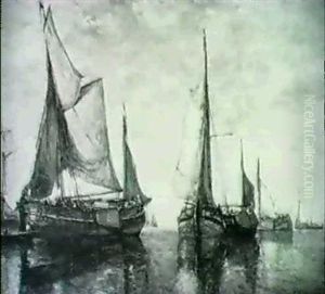 Shipping In A Calm On The Moersdijck, Holland