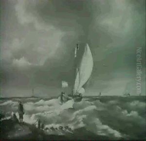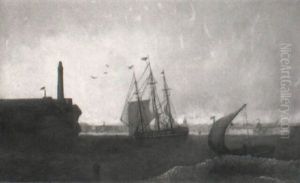 A Norwegian Trading Brig Running Into Port Past The Departing Packet