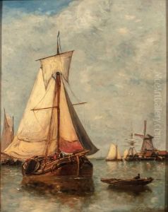 Bateaux Dans L'embouchure De L'escaut, A L'arriere-plan, Un Moulin