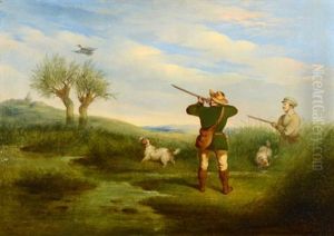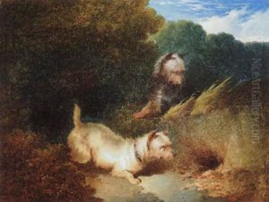 Terriers Chasing A Rabbit Down A Hole (+ Spaniels Flushing Out A Duck; Pair)