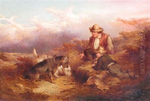 Three Terriers In A Cottage Interior With Man (2 Works)