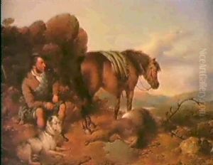 A Ghillie With Pointers And A Pony On A Moor