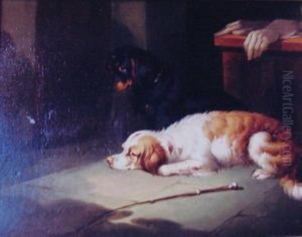 Longing For Their Master, Two Spaniels In An Interior