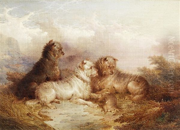 Bring the timeless beauty of Paul Jones's Terriers With Their Catch into your home with a handmade oil painting reproduction. Carefully recreated on canvas by skilled artists using traditional techniques, this piece captures the delicate brushwork, subtle light, and vibrant color of the original masterpiece. With museum-level quality and rich texture, it brings elegance and artistic depth to any space. Enjoy free shipping and make this masterpiece a part of your personal collection.