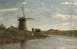 A Mill In A Polder Landscape Near Abcoude