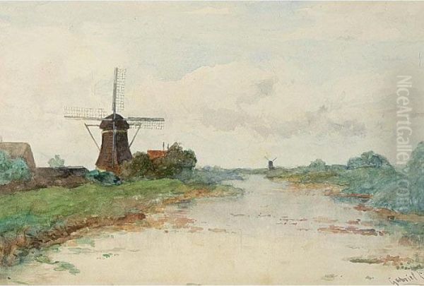 A View Of Windmill 'de Winkel' Near Abcoude