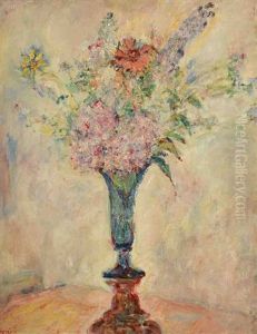 Farbenfroher Blumenstrauss In Blauer Vase