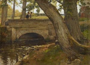 Landschaft Mit Brucke Und Kuhen