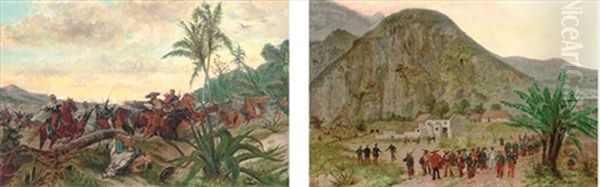 French Cavalry And Austrian Volunteers Skirmishing In Mexico (+ Mexican Prisoners At A French Outpost, Mexico; 2 Works)