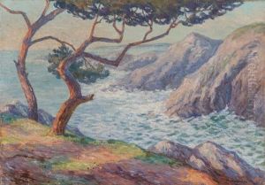 Cote Rocheuse Avec Arbre Et Mer Agitee