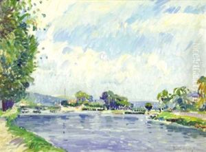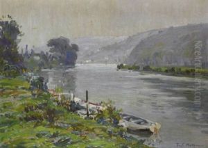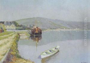 Seine-landschaft Mit Kahn Am Ufer