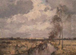 A Landscape With Birches Alonga Stream