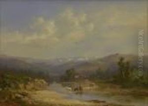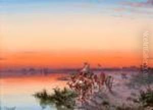 Pack Mules And Travelers In A Middle Eastern Landscape