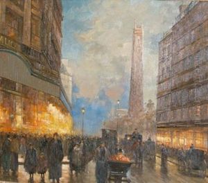 Paris Street Scene Oil Painting by Paul Renard