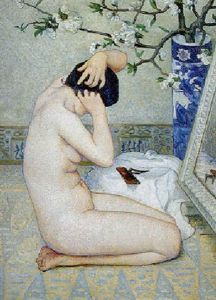 Eine Elegante Dame Streichelt Ihre Katze, Die Neben Ihr Auf Einem Bett Liegt