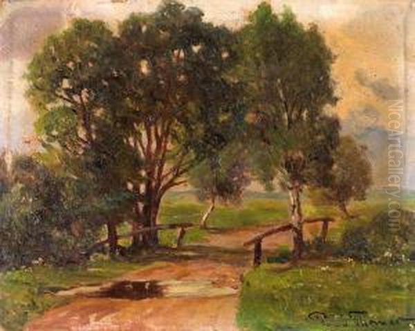 Pejzaz Z Mostkiem Miedzy Drzewami