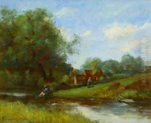 Paysanne Au Bord De La Riviere.