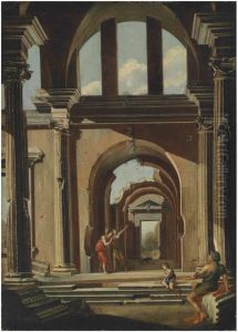 An Architectural 'capriccio' With Figures Passing Through An Archway