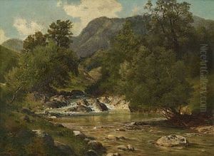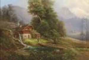 Cottage And Barn By A Mountain Stream
