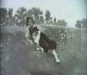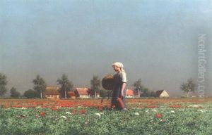Bauernmadchen, In Einem Bluhenden Mohnfeld Stehend
