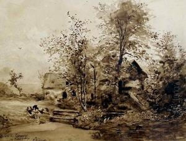 Muhle Bei Goldmuhl Im Fichtelgebirge. Sepiazeichnung Auf Karton, Ruckseitig Mit Zeichnung. 22 X 29 Cm. Links Unten Signiert Und Bezeichnet.