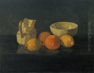 Stillleben mit Orangen, Bananen, Zitrone und Tomate