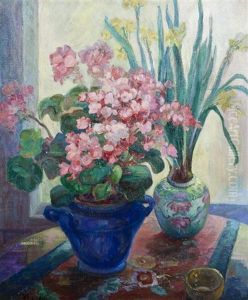 Still Life With Marble Statue, Grapes And Ceramic Vase