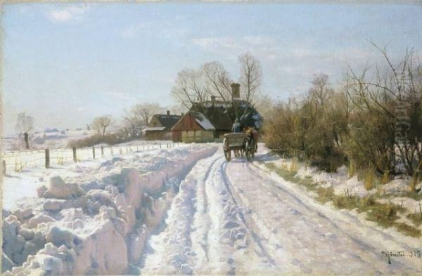 Danische Winterlandschaft Mit Einem Pferdekarren