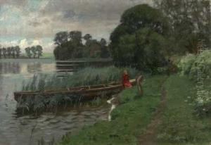 Family On The Beach A Summer's Day. Signed P. Monsted