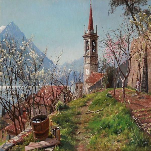 Bring the timeless beauty of Peder Mork Monsted's Spring In Varenna In Italy With A Woman Watering A Flower Bed into your home with a handmade oil painting reproduction. Carefully recreated on canvas by skilled artists using traditional techniques, this piece captures the delicate brushwork, subtle light, and vibrant color of the original masterpiece. With museum-level quality and rich texture, it brings elegance and artistic depth to any space. Enjoy free shipping and make this masterpiece a part of your personal collection.