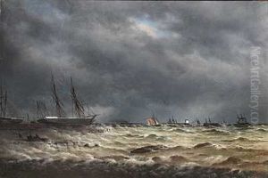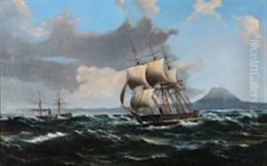 Seascape With The Frigate Jylland On Open Sea
