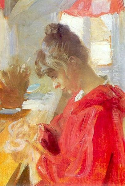 Bring the timeless beauty of Peder Severin Kroyer's Marie sits at a table sewing into your home with a handmade oil painting reproduction. Carefully recreated on canvas by skilled artists using traditional techniques, this piece captures the delicate brushwork, subtle light, and vibrant color of the original masterpiece. With museum-level quality and rich texture, it brings elegance and artistic depth to any space. Enjoy free shipping and make this masterpiece a part of your personal collection.