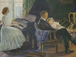 Evening Picture With Two Girls At The Piano