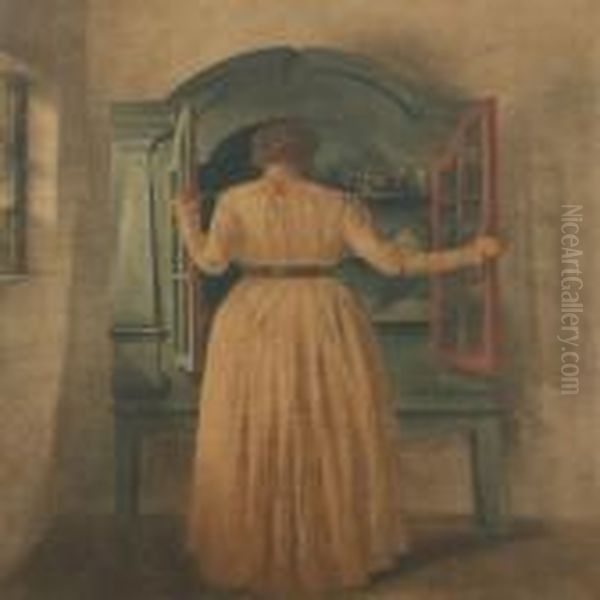 The Blue Cupboard Oil Painting by Peder Vilhelm Ilsted