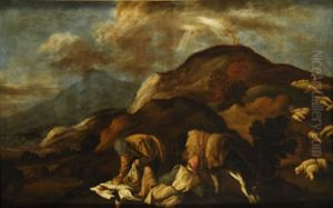 Paisaje Con Pastores; Al Fondo Elsacrificio De Isaac