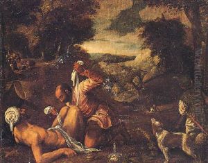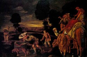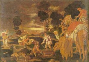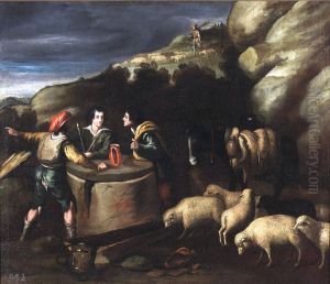Shepherds With Goats And Sheep Beside A Well