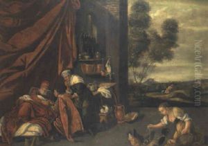 A Rocky River Landscape With Balaam And The Angel (+ A Mountainous River Landscape With Jacob Wrestling The Angel; Pair)