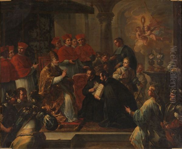 Bring the timeless beauty of Pedro Rodriguez de Miranda's Aprobacion de la regla de la Orden de los Clerigos Menores into your home with a handmade oil painting reproduction. Carefully recreated on canvas by skilled artists using traditional techniques, this piece captures the delicate brushwork, subtle light, and vibrant color of the original masterpiece. With museum-level quality and rich texture, it brings elegance and artistic depth to any space. Enjoy free shipping and make this masterpiece a part of your personal collection.