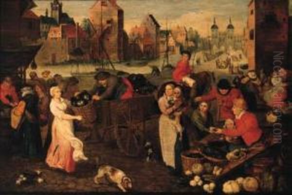 A Vegetable Market On A Quay In A Town