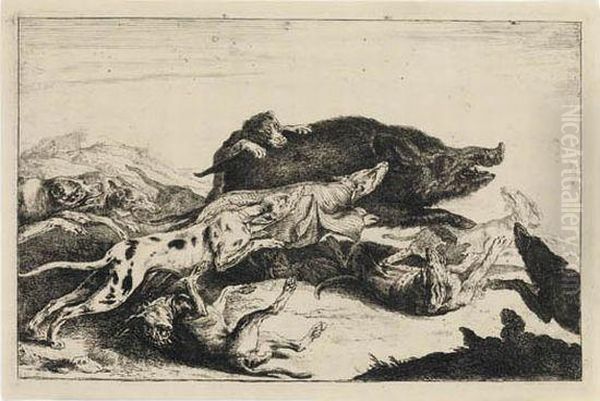 A Boar Chased By Dogs