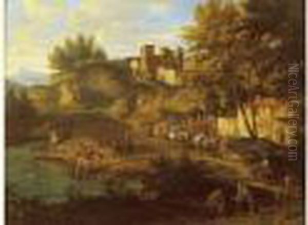Marchands Et Paysans Sortant D'une Ville.