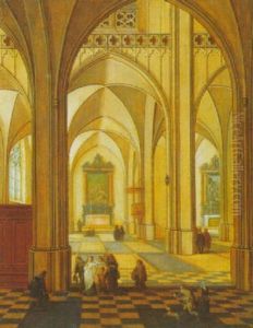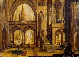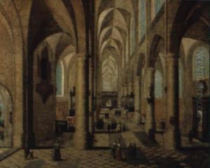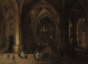 The Interior Of A Gothic Cathedral With Elegant Company And Other Figures
