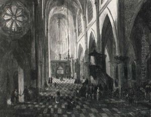 Interior Of A Cathedral Looking East With A Procession Of Gentlefolk
