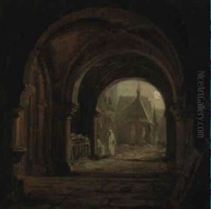 Interior Of A Cathedral With Elegant Figures In The Foreground
